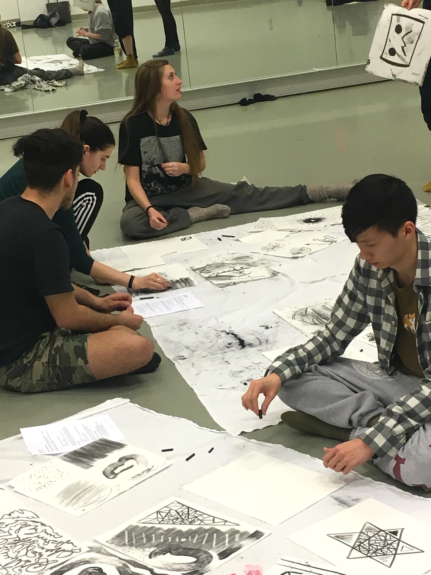 Watching the dancers create movement from their drawing compositions was a new experience for me. It was delightful to step outside of my own domain, offer a few tools and ideas, provide space for exploration, and then experience a new form unfold. I learned from them just as they learned from me. And from this shared experience new ideas form, and I go back into my own practice and explore again.